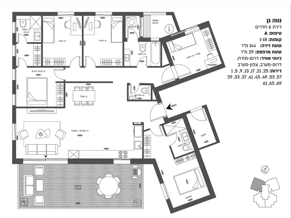תריסי גלילה חשמליים בכל הדירה (למעט הממ"ד וחדרים רטובים).